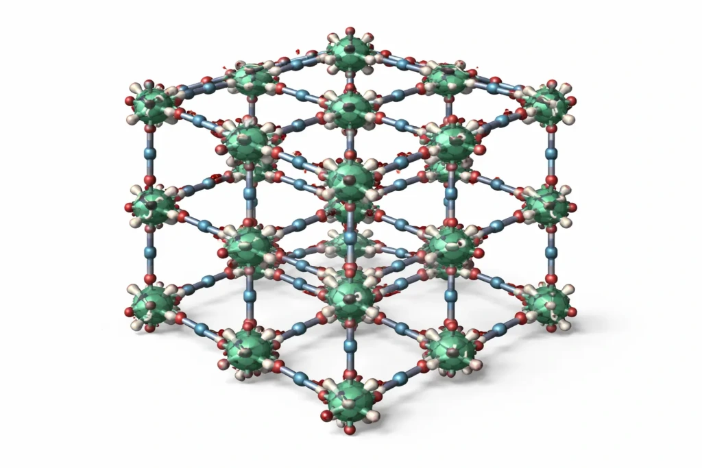 Metalo–organiniai karkasai yra porėtos kristalinės medžiagos, sukuriamos sujungiant metalo jonus su organinėmis molekulėmis į itin tvarkingas trimates struktūras. Tokia sandara leidžia tiksliai valdyti porų dydį ir chemines savybes, todėl šios medžiagos gali būti pritaikomos labai konkretiems technologiniams tikslams.